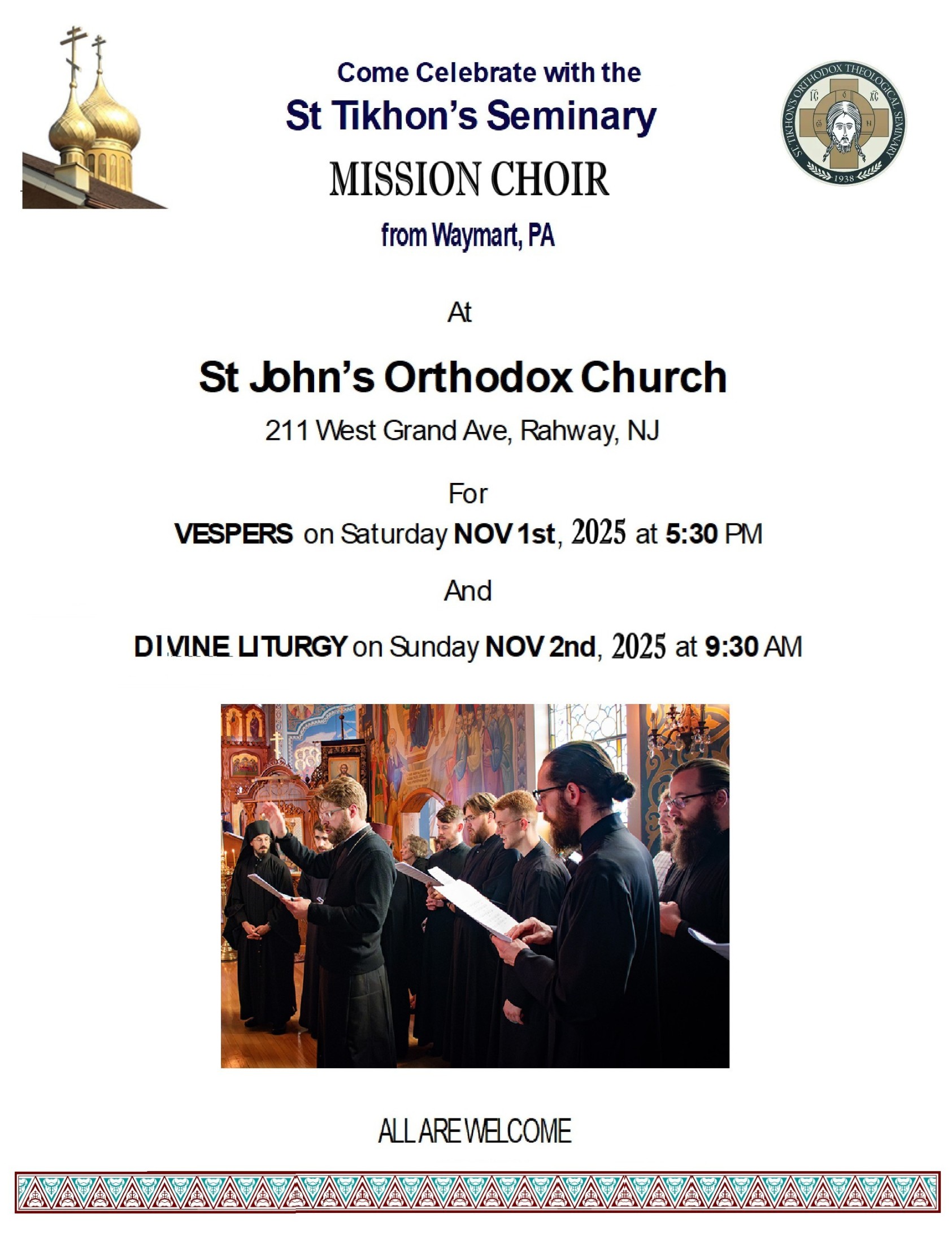 Divine Liturgy, Sunday November 2nd at 9:30.